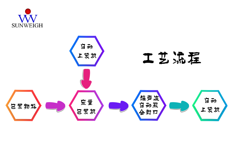 生產(chǎn)出的物料首先進(jìn)入緩存料倉(cāng)中,待包裝機(jī)開始包裝時(shí),當(dāng)重量達(dá)到事先設(shè)定好的值時(shí),包裝機(jī)停止給料。自動(dòng)上袋機(jī)自動(dòng)拾取包裝袋,通過(guò)上袋機(jī)將包裝袋套在包裝機(jī)下料口處,包裝機(jī)檢測(cè)到包裝袋,螺旋開始工作將物料送入包裝袋內(nèi),等到填袋完畢后,夾袋裝置松袋推袋裝置將裝滿物料的袋子推到輸送機(jī)上超聲波封口,最后再由輸送機(jī)將包裝好的物料包裝袋輸送到下個(gè)工序。