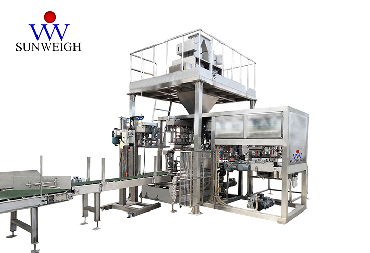 全自動包裝線由:定量電子稱、供袋機(jī)構(gòu)、上袋機(jī)構(gòu)、裝袋機(jī)構(gòu)、夾口整形機(jī)、縫口系統(tǒng)、檢重系統(tǒng)、金檢系統(tǒng)剔除系統(tǒng)等組成。